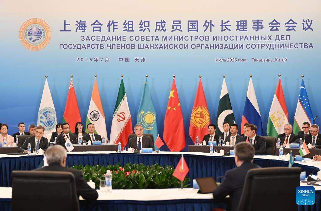 Chinese Foreign Minister Wang Yi, also a member of the Political Bureau of the Communist Party of China Central Committee, chairs the Shanghai Cooperation Organization (SCO) member states' meeting of the council of the ministers of foreign affairs in Tianjin, north China, July 15, 2025. (Xinhua/Zhao Zishuo)