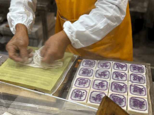 余姚市梁弄镇传统糕点。用大米磨粉制作,填入豆沙馅再蒸熟,方方正正、白白净净的外形,配着红曲粉染色的正楷字体吉祥话,福气满满。刚蒸熟的大糕,外皮有着浓郁的米香和淡淡的清甜,红豆馅细软,外皮糯唧唧,让人吃了还想吃。