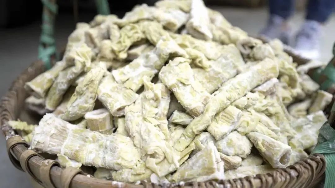 奉化三大土特产之一,宁波人的“祖传”佳肴,“百日菜”。外形很像羊尾,而被称作为羊尾笋干,肉色清白透黄而且鲜美可口,营养丰富的同时,还具有消暑开胃之功效。