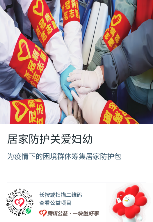 目前,由基金会发起的“居家防护关爱妇幼”公益项目已上线多个互联网公募平台,一支体温计,一个防护口罩,一份防疫指南,一份退热贴,一份消毒液,小小善举就能给农村家庭多一分安全,多一份保障!
