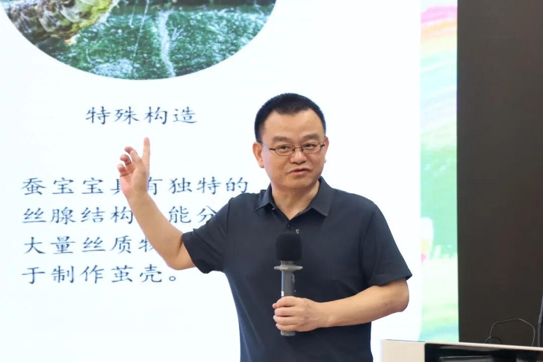 田景奎研究员为孩子们带来了妙趣横生的科普报告——《你好,蚕宝宝!》。他从蚕与丝绸的千年历史娓娓道来,深入浅出地讲解了相关科学知识,并生动介绍了自己团队利用蚕进行的前沿生物医学研究,为雪域高原的孩子们推开了一扇瞭望生命科技奇妙世界的大门。