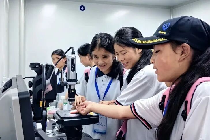 随后,葛凤博士带领大家走进微观世界,她讲解了显微镜的原理与应用,并带领大家参观了科学实验中心和核酸适体筛选中心。让学子们亲手实践,制作样本,在显微镜下仔细观察自己的口腔细胞、发丝、指纹……沉浸式的体验让学子们深刻感受到科技探索的无穷魅力。