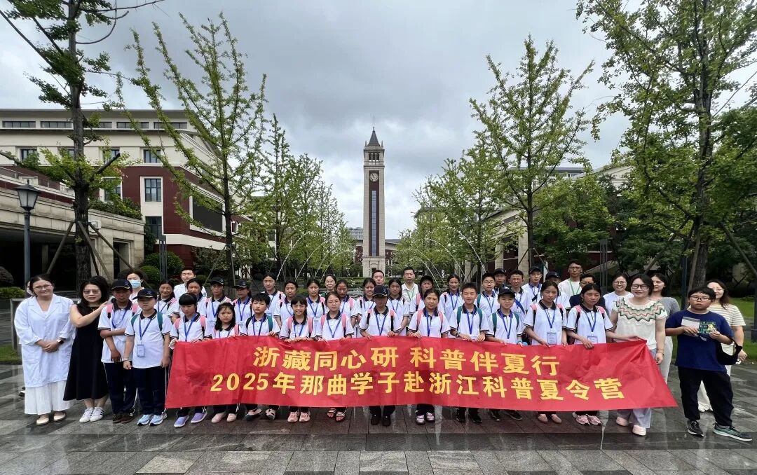 今年是西藏自治区成立六十周年,也是西藏那曲学子第三次赴浙开展科普夏令营活动。近日,来自西藏那曲聂荣中学的22名师生如约而至,与浙江学生代表一道,一路结对同行,用15天的精彩行程续写"浙藏同心"的温暖篇章。